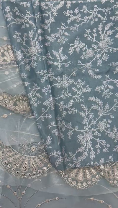• EMBROIDERED & EMBELLISHED+ PANI WORK FRONT BORDER ORGANZA.
