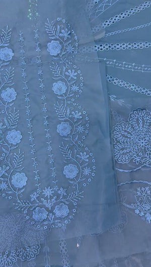 Embroidered organza Border for daman. Two embroidered Dupatta pallus.