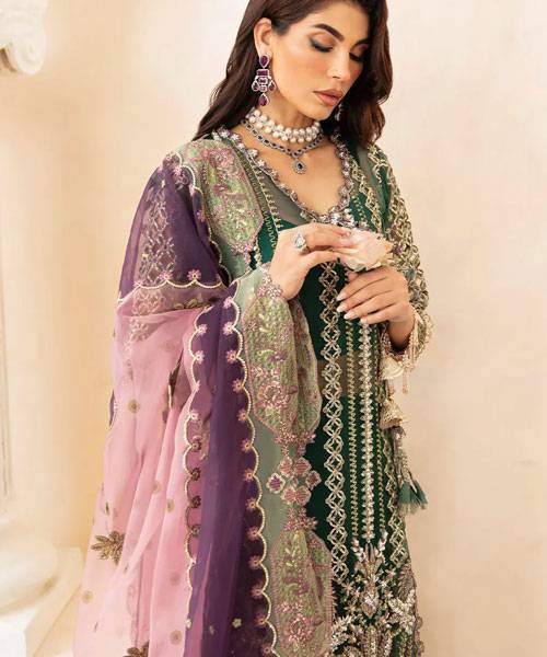 • Embroidered Organza Front and Back Daman and