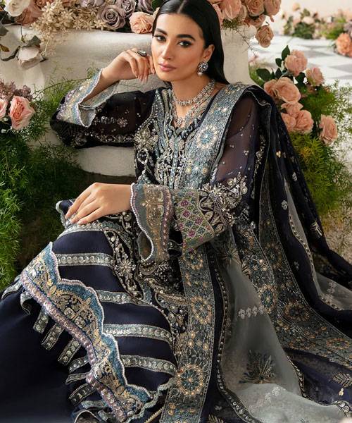 •Embroidered Organza Hand Embellished Front