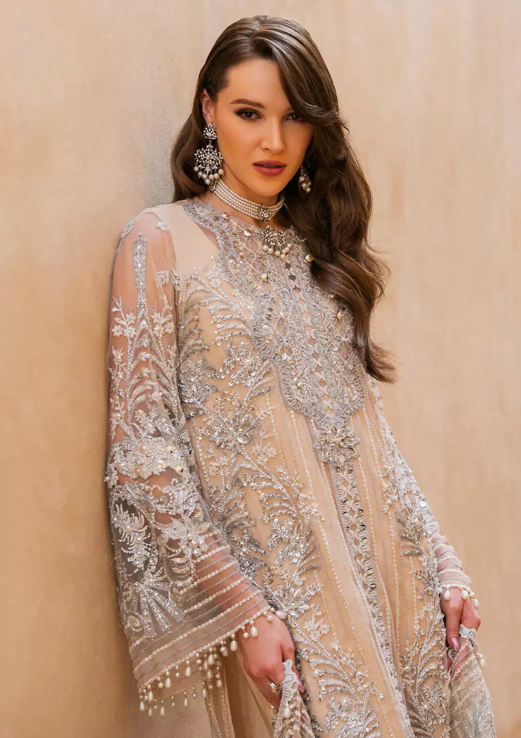 Embroidered & embellished sleeve net