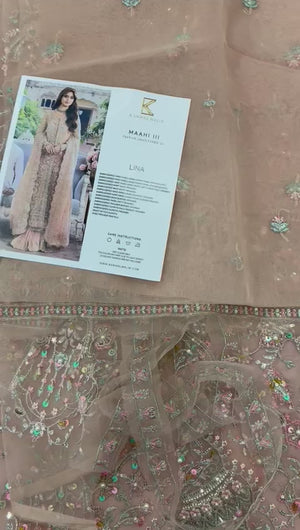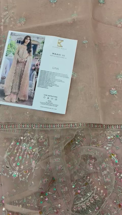 EMBROIDERED HAND EMBELLISHED FRONT PANEL ORGANZA(LEFT). EMBROIDERED HAND EMBELLISHED FRONT PANEL ORGANZA(RIGHT). EMBROIDERED HAND EMBELISHED FRONT LEFT & RIGHT KALI ORGANZA.