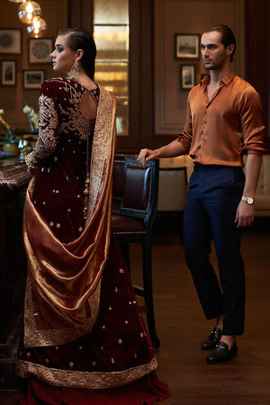 EMBROIDERED & EMBELISHED FRONT & BACK YOKE VELVETEMBROIDERED FRONT VELVET