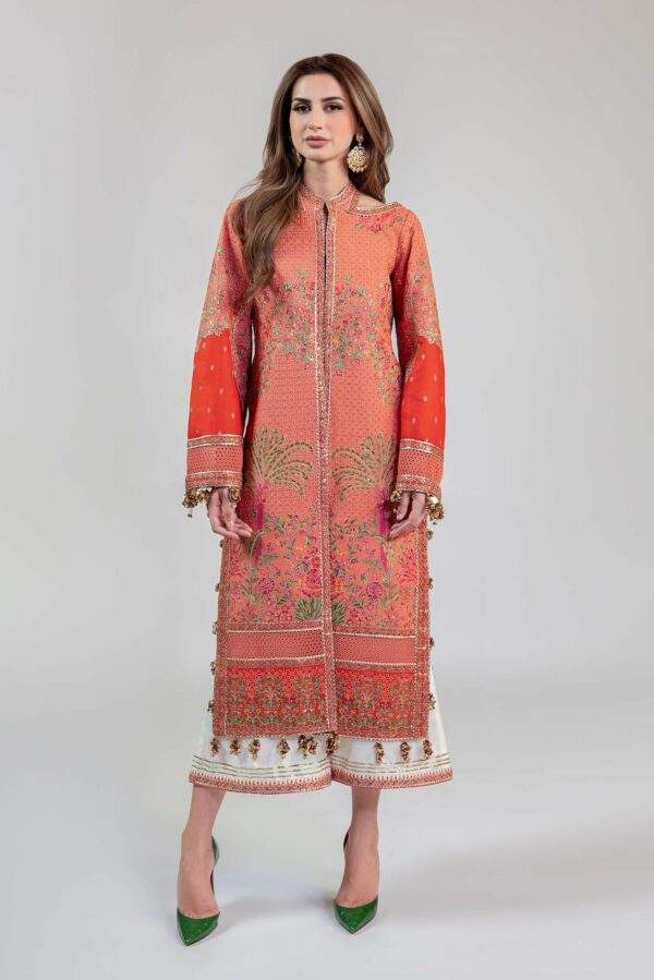 Embroidered Front Open & Back Neckline Border Organza